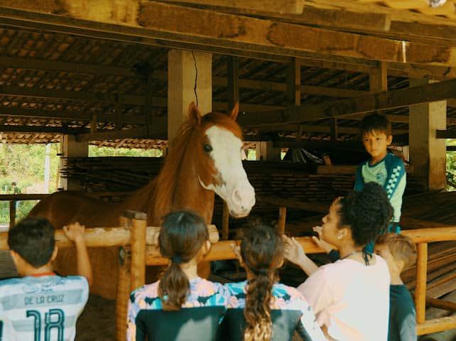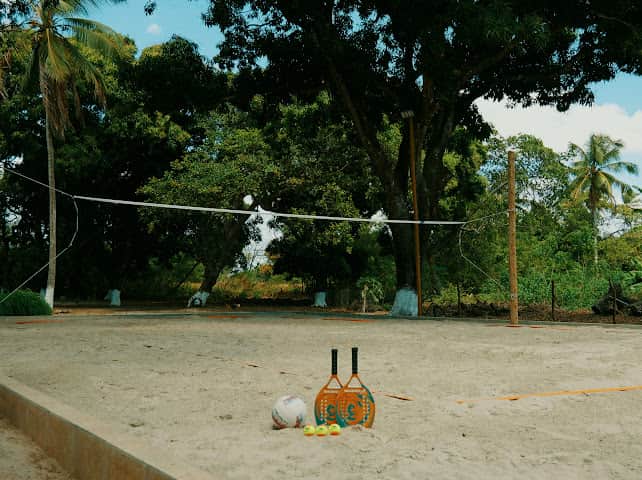 Die Unterkünfte liegen umgeben von der fazenda im 43 Hektar großen und von der Öffentlichkeit abgeschirmten Dorfbereich. Inmitten einer riesigen Cocos-Plantage sowie alten Mangobäumen, diversen anderen Fruchtbäumen, Urwald und Bio-Landbau sowie Tieren.